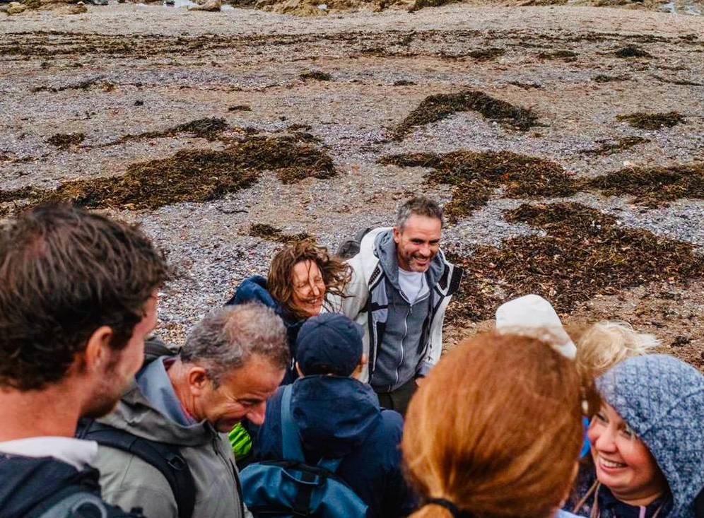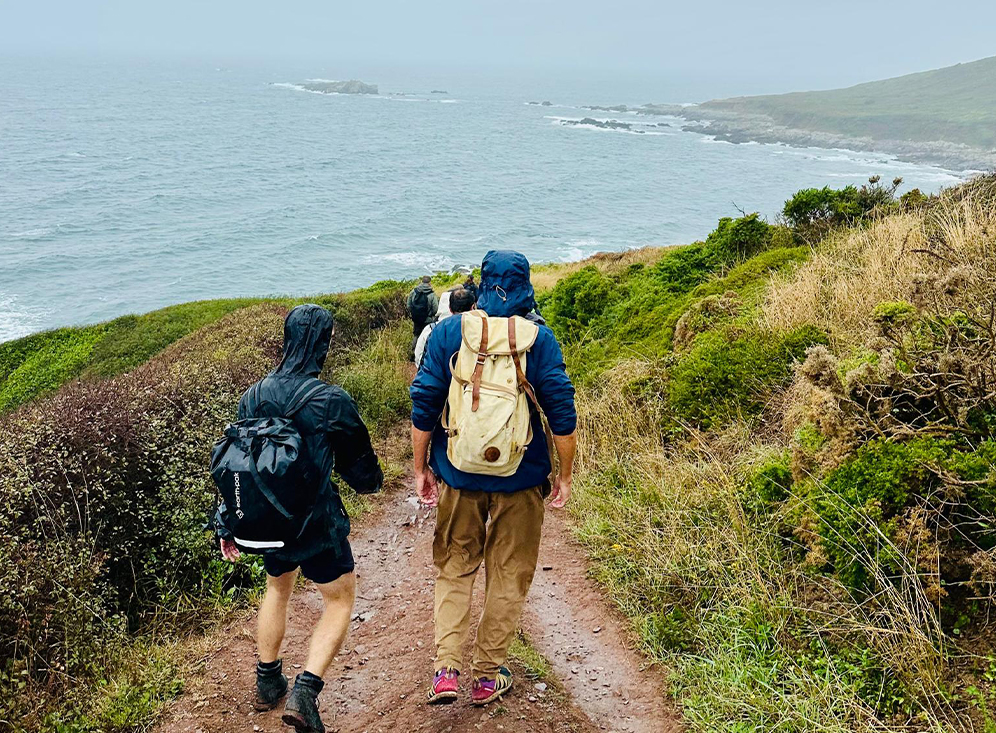 I waited outside Plymouth Station under a few rays of sunshine in anticipation of who I was going to be spending the day with. It didn’t take long to realise who was part the group, a few individuals loitering outside the station dressed in walking gear was an easy giveaway! As soon as Lev turned up we were all piled into taxis and whisked to Wembury beach. Coffees and introductions were made at the Old Mill Café whilst the weather decided to move in on us. Soft grey rolled off the sea and blurred the horizon followed by drizzle but fortunately we had all come prepared with waterproof walking gear. Then off we went to navigate the South West Coastal Path and strike up conversations with new friends. The first stop of the day was at Café Bovisands where we were grateful to shelter from the rain and sit and learn about the Explorer’s Mindset and how to craft exciting stories that would be both engaging and inspiring. After more coffee and lots of note taking we headed off again along the coastal path. As the path curved and climbed, with the wind tugging at our jackets and the rain streaking sideways, the conversations deepened and we continued to chat and share our own stories all the way to Mount Batten where we stopped for a late lunch and continued with learning and story crafting.